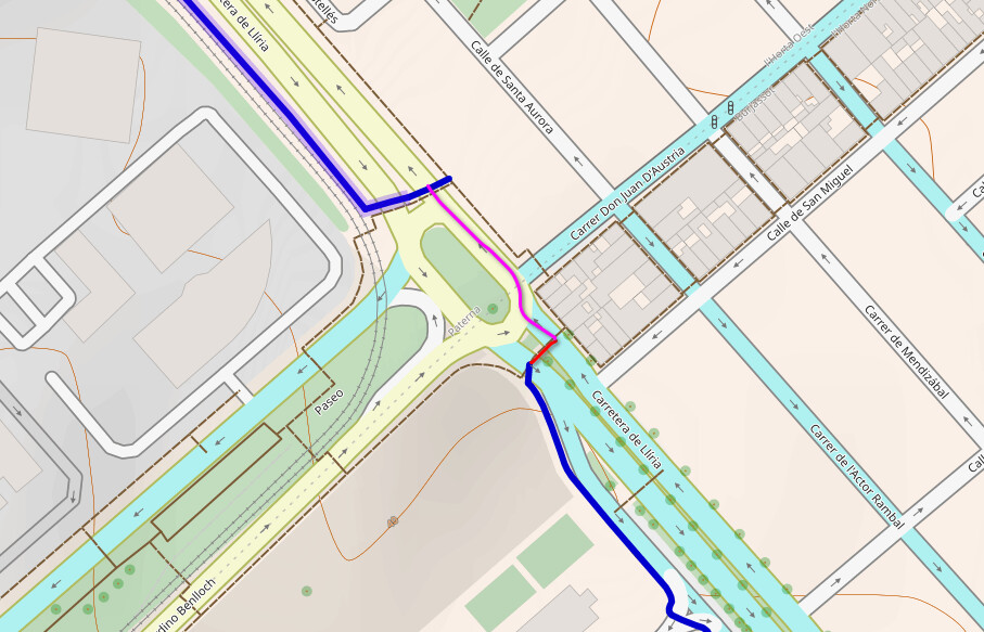 I use ORS to make a GPX track file, analyze it (track type, road surface, etc) and import it to OsmAnd for navigation, and it that “analyzing” fase I want to know when I will face a part of the way in which I should dismount, and to see if a little workarround is worth it, and don’t realize when the route is taking me through a sidewalk when I’m actually in the field.