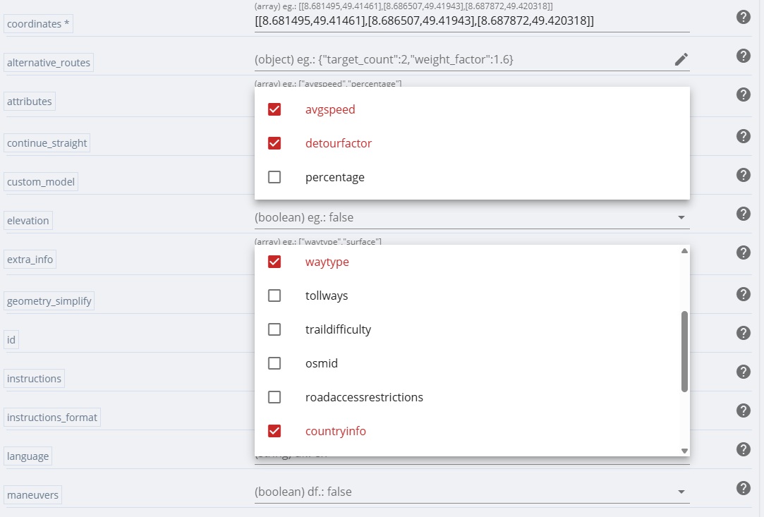 E.g. in v2/directions/…/geojson, there are parameters like “attributes” or “extra_info” where multiple options can be chosen. However, I cannot close the multiselect windows anymore: