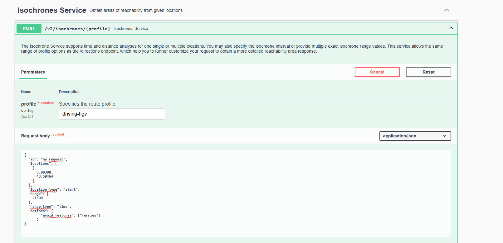 I’m trying now to do more advanced requests (longer isochrones, heavy good vehicles instead of cars) but i’m not sure how to do so with within the ors-config file. I have simply uncommented all comments to activate some parameters, but I’m getting an error when launching the docker container via docker-compose.