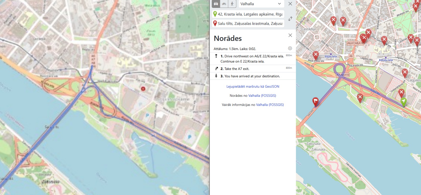 (on the right side route is using roundabout, but not truck just car option)